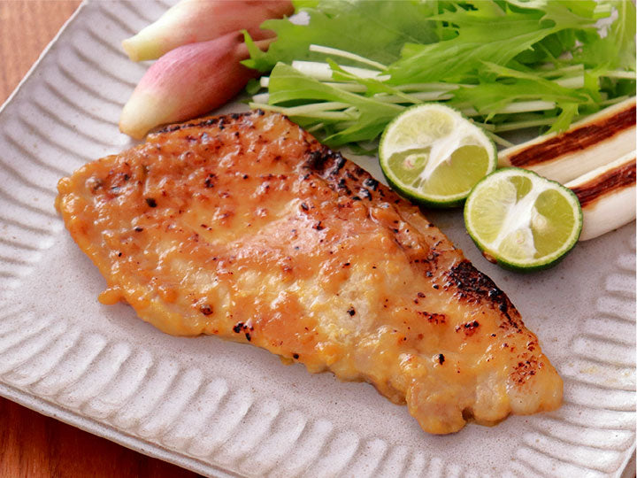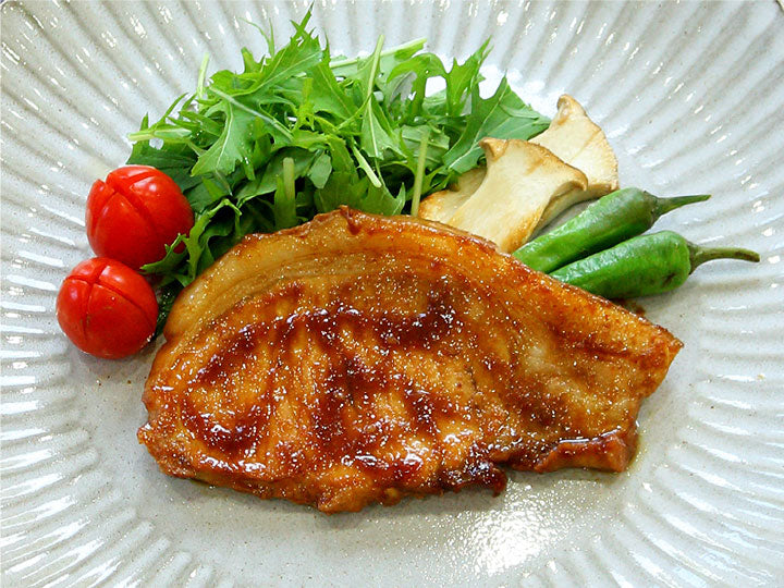 京都伝統の白味噌をベースとした風味豊かなタレに元気豚ロース肉を漬け込みました。