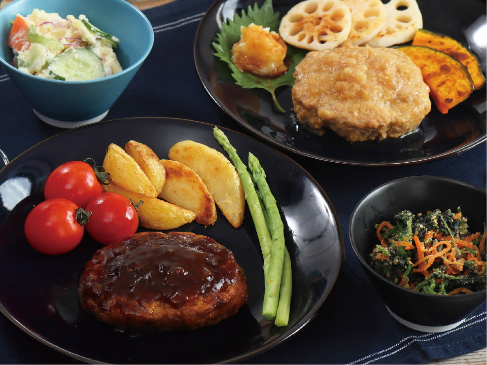 本格的な味わいのデミグラスソースハンバーグと、たっぷりの大根おろしを使用した和風おろしハンバーグの2種8個セット。