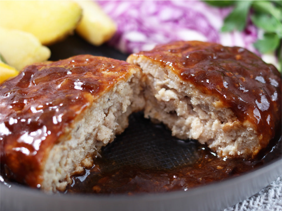 元気豚100%のハンバーグは、食感がやわらかくてとってもジューシーです。