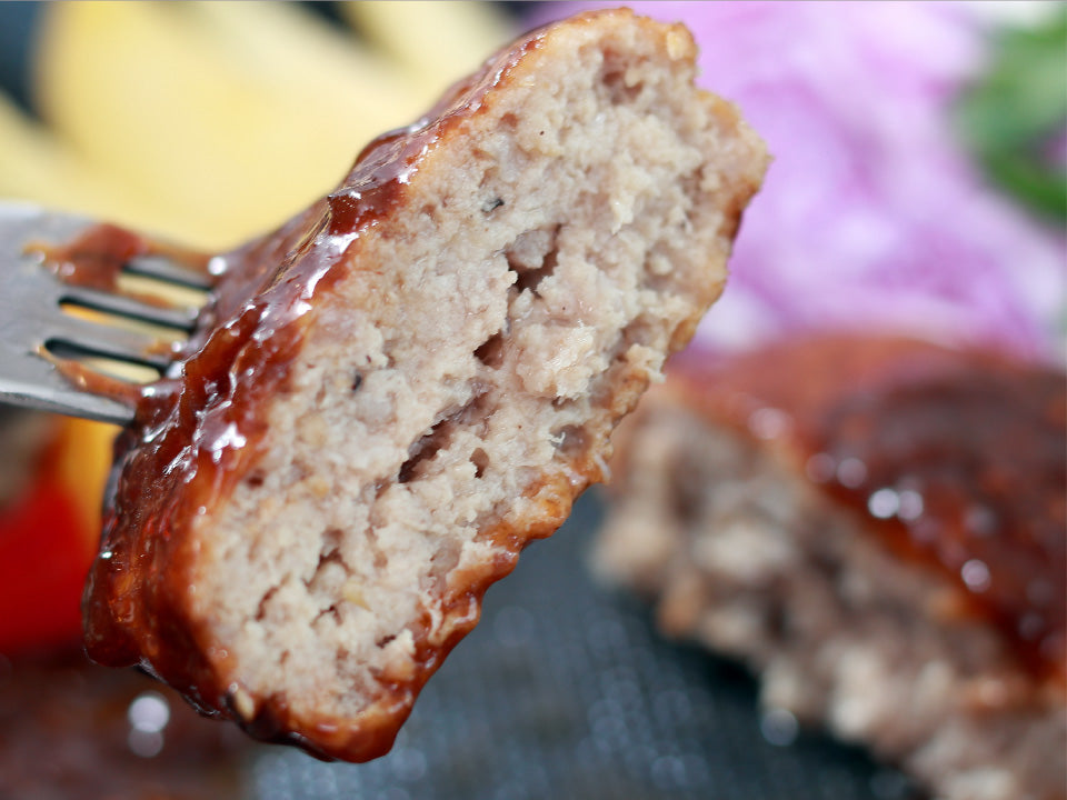 使用しているお肉は元気豚100%。ジューシーでふんわりやわらかい、デミグラスハンバーグのギフトセット。