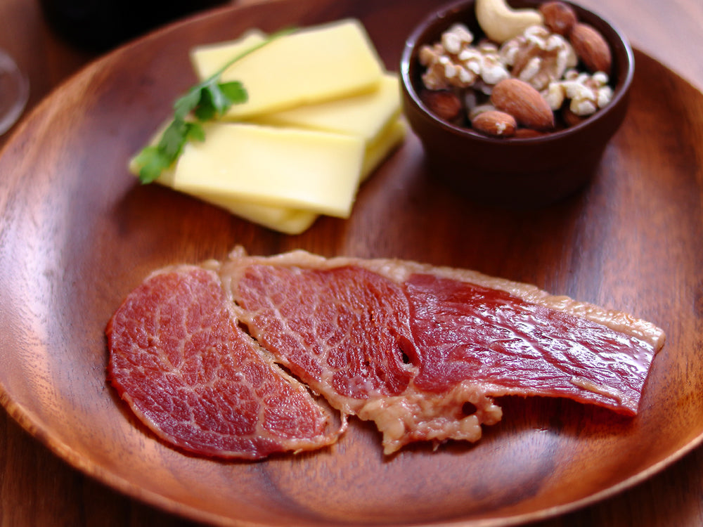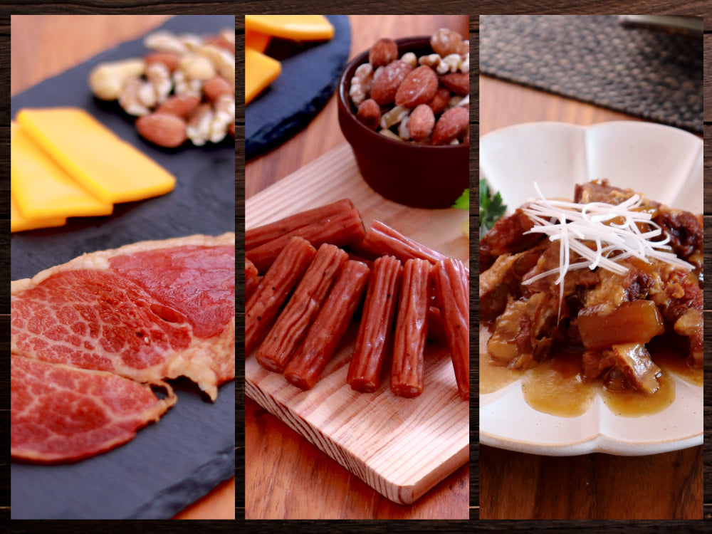 ジャーキーは、お肉が硬くなりすぎないよう適度に乾燥させ、赤身部分には旨味がギュッと凝縮されています。