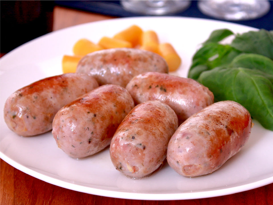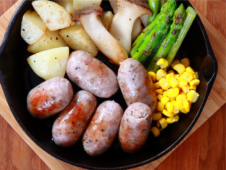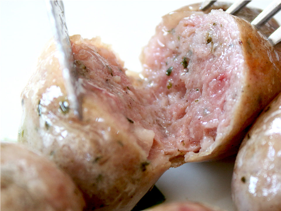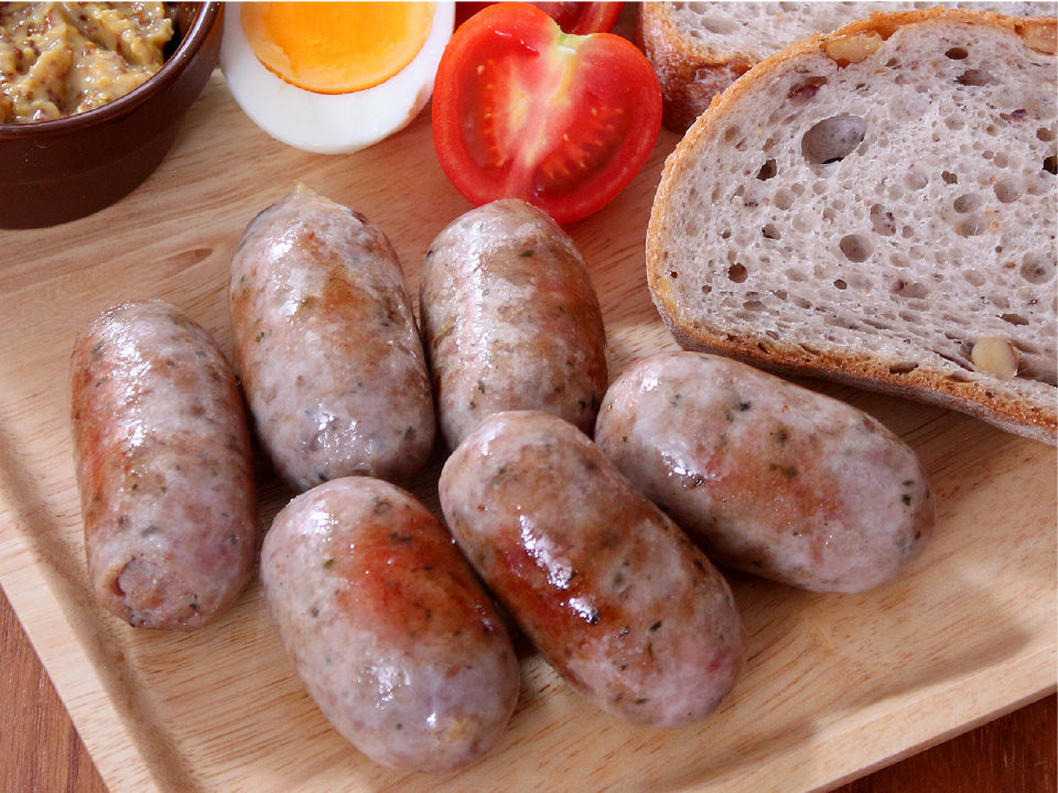 元気豚の粗挽き肉に、香り高いハーブと香辛料を加えたミニサイズのフランクフルト。